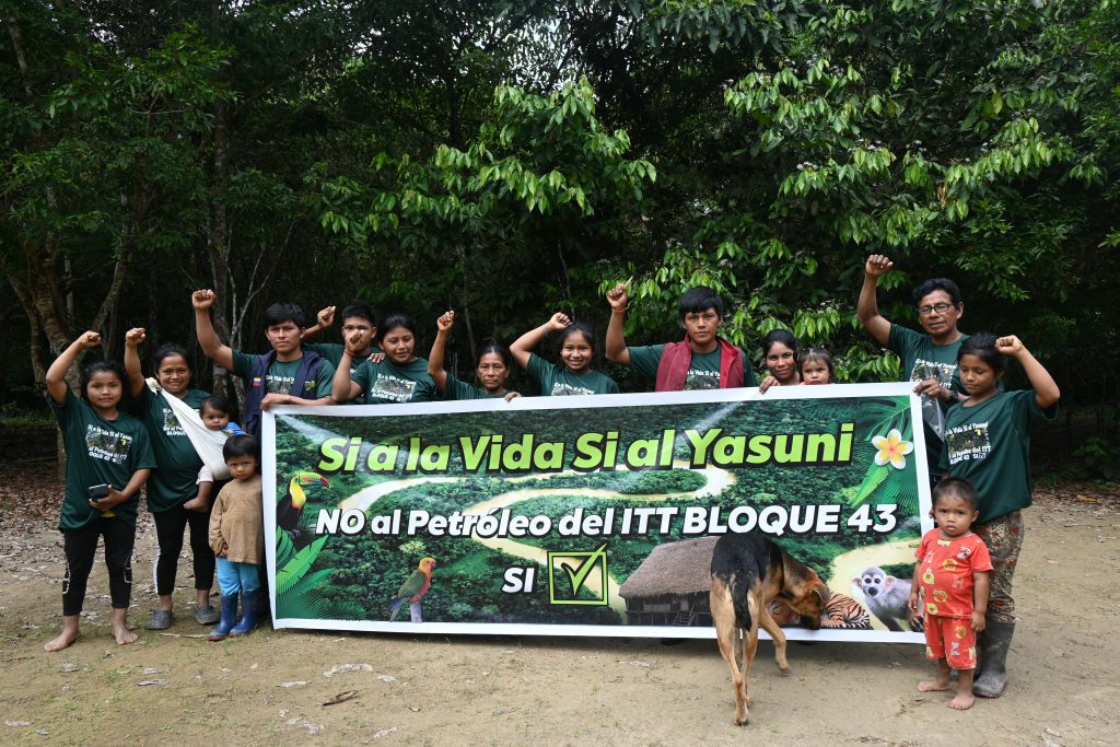 Desde el Pueblo Ancestral Kichwa Kawsak Sacha respaldamos el voto por el SÍ al Yasuní, defendiendo el valioso ecosistema que nos rodea. Cuidar el Yasuní es también proteger los derechos y la vida de los Pueblos en aislamiento Tagaeri – Taromenane; Y, es un compromiso con el ambiente frente al cambio climático.